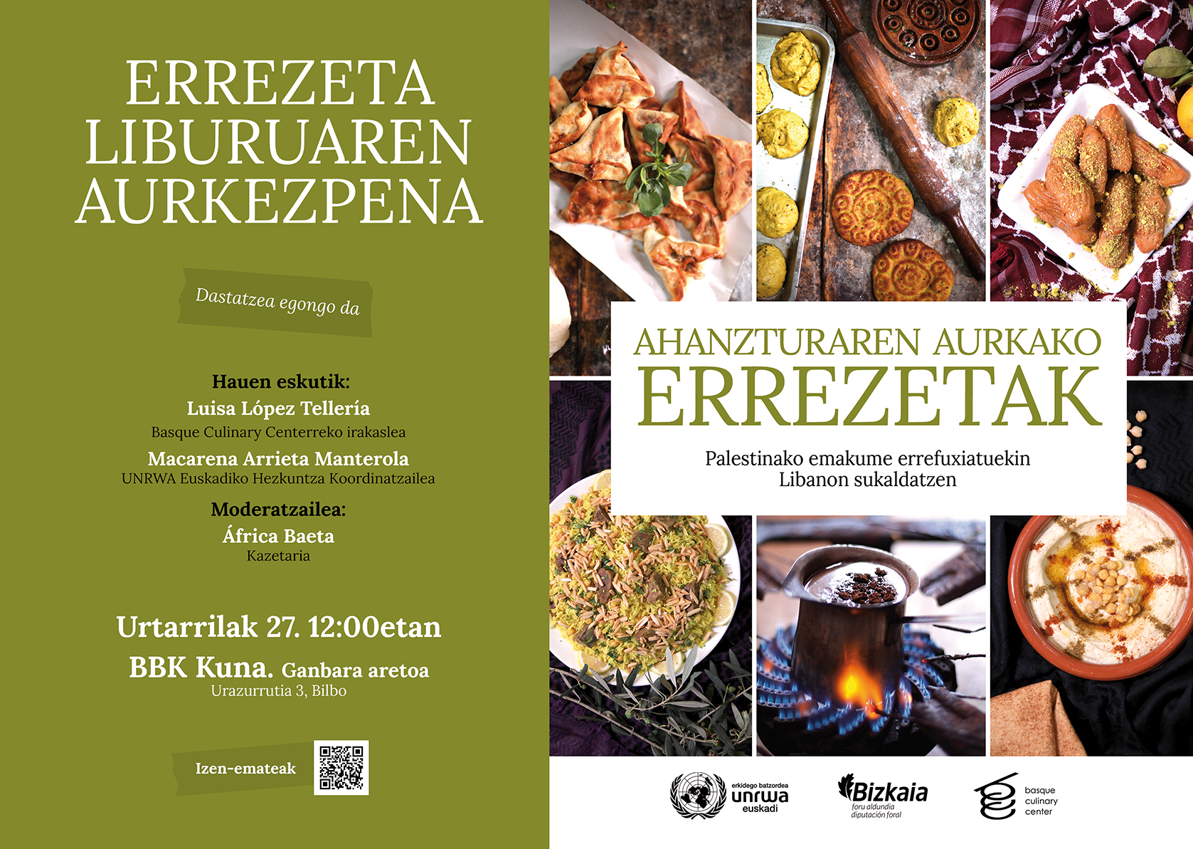 Urtarrilaren 27an, UNRWA Euskadik “AHANZTURAREN AURKAKO ERREZETAK. Palestinako emakume errefuxiatuekin Libanon sukaldatzen” liburua aurkezten du. Liburua 12 emakume ausarten sukaldaritza jakintzetan oinarrituta dago. Emakume horientzat sukaldaritza Palestinako historia, bere historia, kontatzeko modu berezia da.