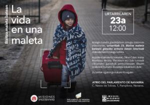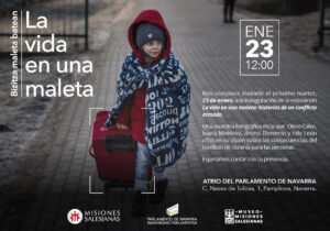 Desde Misiones Salesianas Navarra nos dirigimos a usted para extenderle una cordial invitación a la inauguración de la exposición fotográfica titulada «La Vida en una Maleta». La misma se llevará a cabo el día 23 de enero a las 17:30 en el atrio del Parlamento de Navarra.
