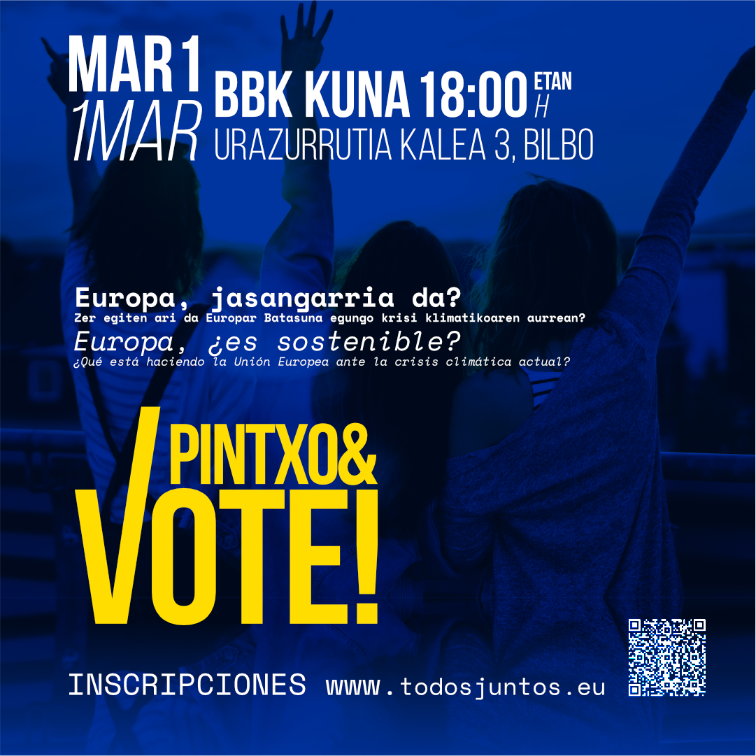 Evento 11 ODS 11 - icon Ciudades y comunidades sostenibles 12 ODS 12 - icon Produción e consumo sostibles 13 ODS 13 - icon Acción por el clima 17 ODS 17 - icon Alianzas para lograr los objetivos Save the Date!! Europa, ¿es sostenible? II Encuentro Pintxo&Vote 01/03/2024 @ 18:00 - 20:00 CET La asociación eCivis invita a la ciudadanía a participar en el encuentro Pintxo&Vote “Europa, ¿es sostenible?”, que se celebrará el próximo viernes 1 de marzo en el espacio de BBK […]