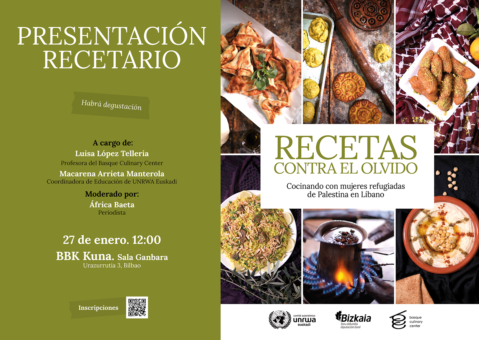 Evento 4 ODS 4 - icon Educación de calidad 5 ODS 5 - icon Igualdad de género Presentación “Recetas contra el olvido: Cocinando con mujeres refugiadas de Palestina en Líbano” 27/01/2024 @ 12:00 - 13:30 CET El 27 de enero, UNRWA Euskadi presenta » RECETAS CONTRA EL OLVIDO. Cocinando con mujeres refugiadas de Palestina en Líbano”, un libro de cocina inusual escrito a partir de los […]